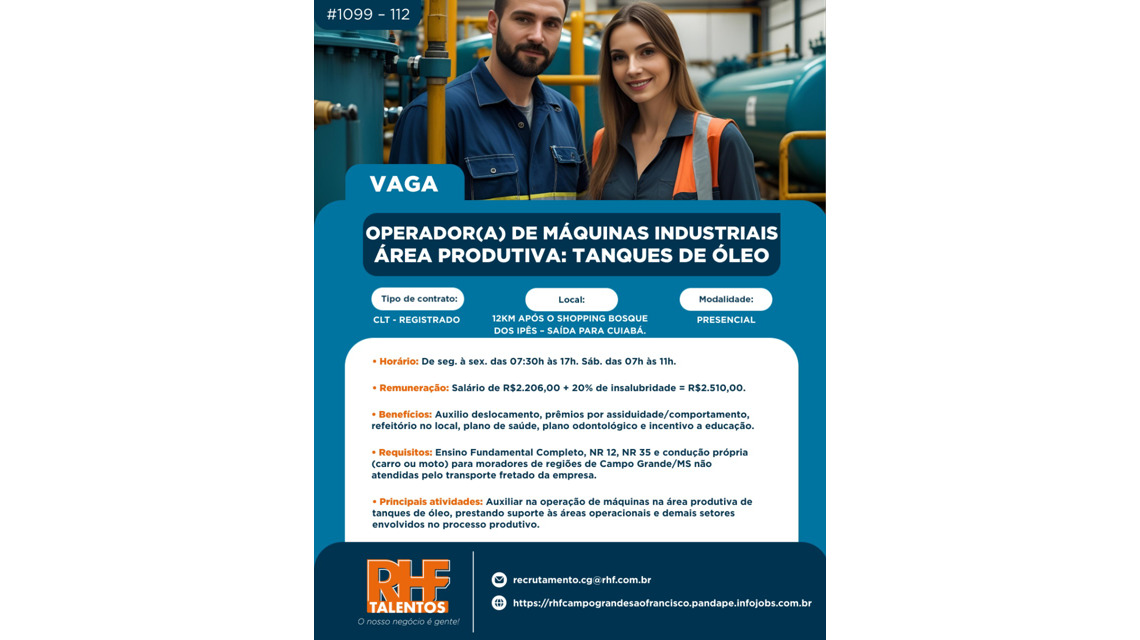 Operador(a) de Máquinas Industriais | Área produtiva: Tanques de Óleo #1099 - 112