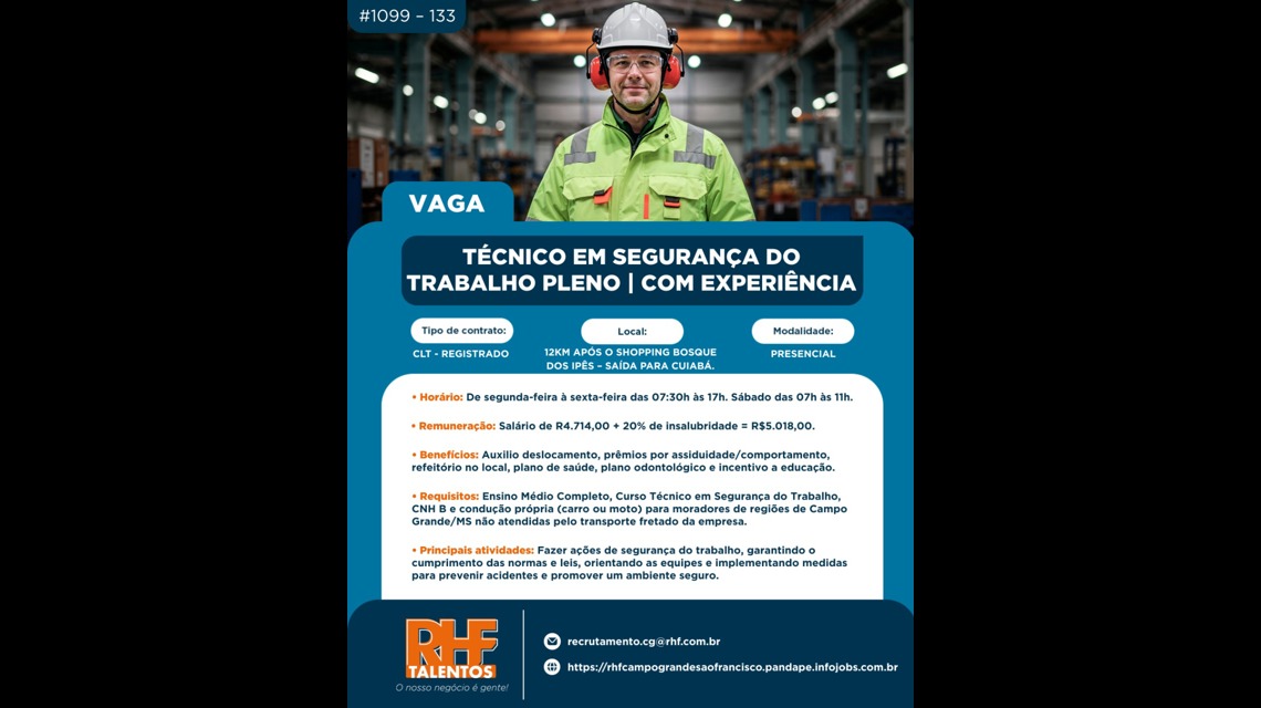 Técnico de Segurança do Trabalho Pleno #1099 - 133