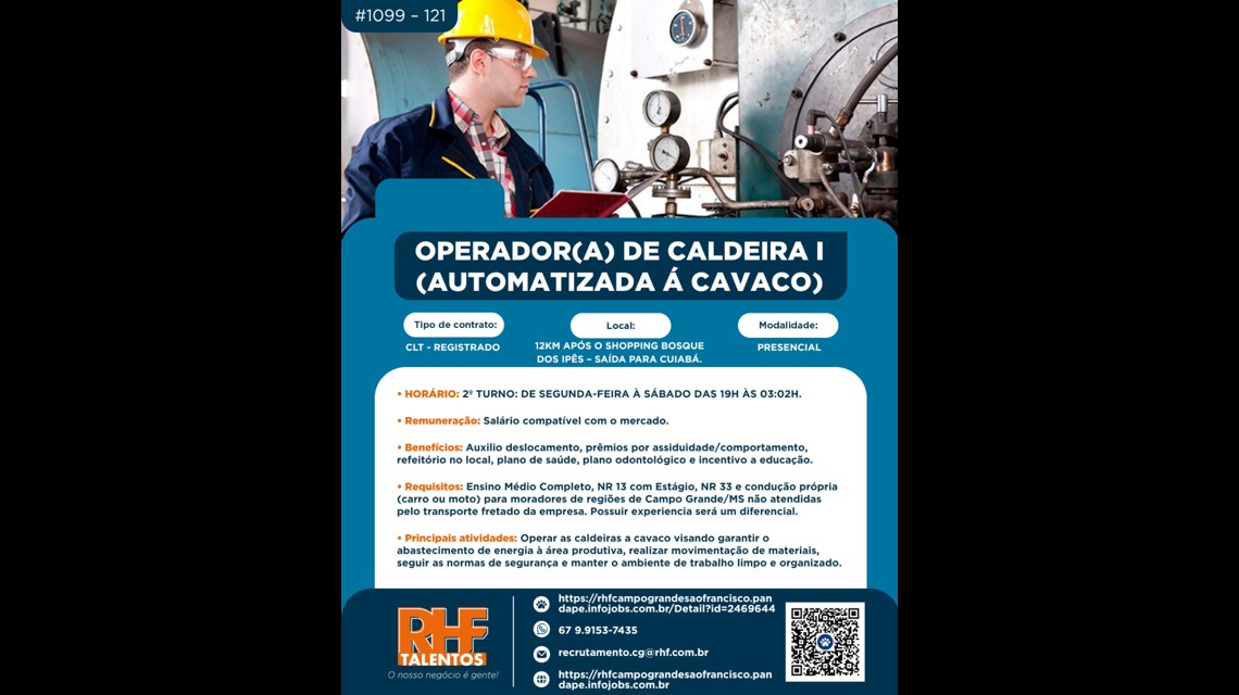 Operador(a) de Caldeira (Sem experiência - 2º Turno) #1099 - 121