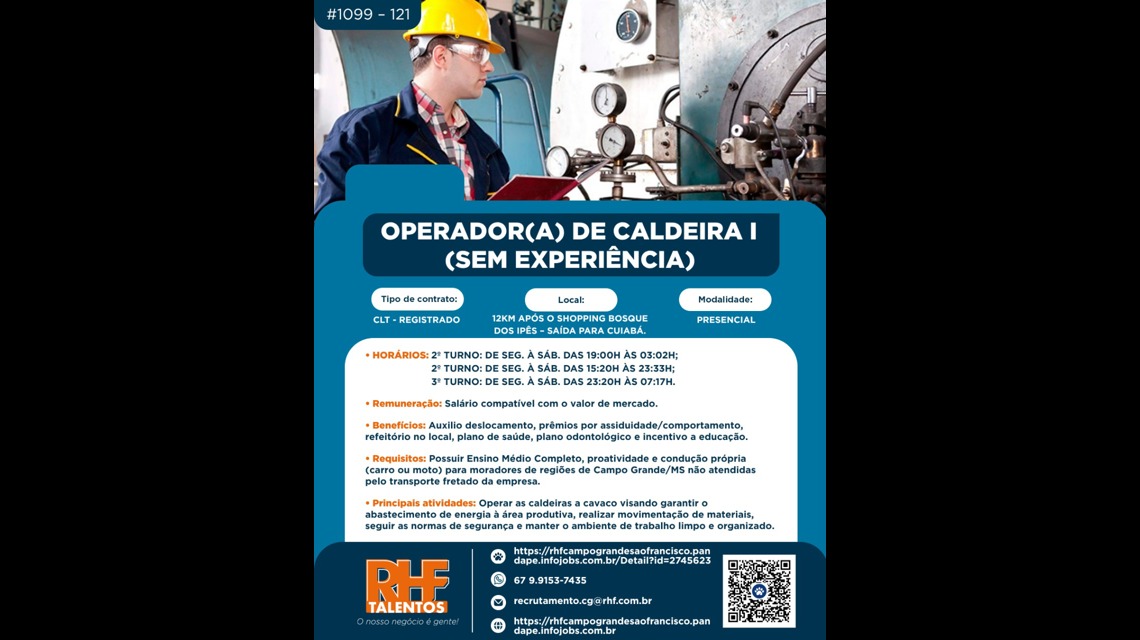 Operador de Caldeira (Sem experiência - 2º Turno) #1099 - 121