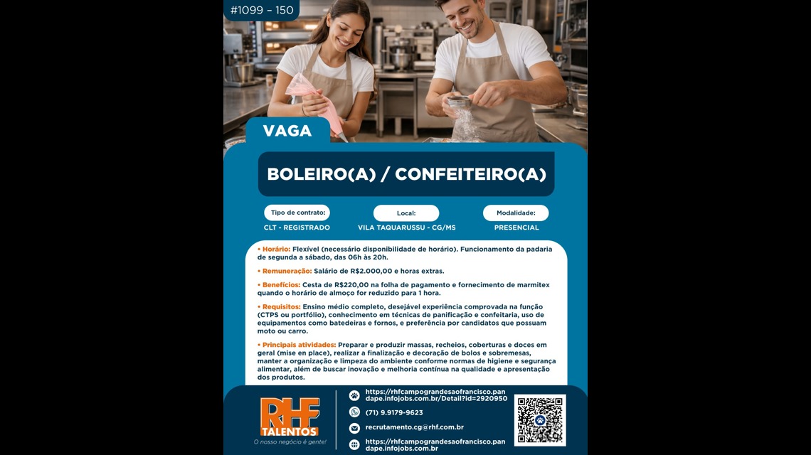 Vaga: Confeiteiro(a) / Boleiro(a).