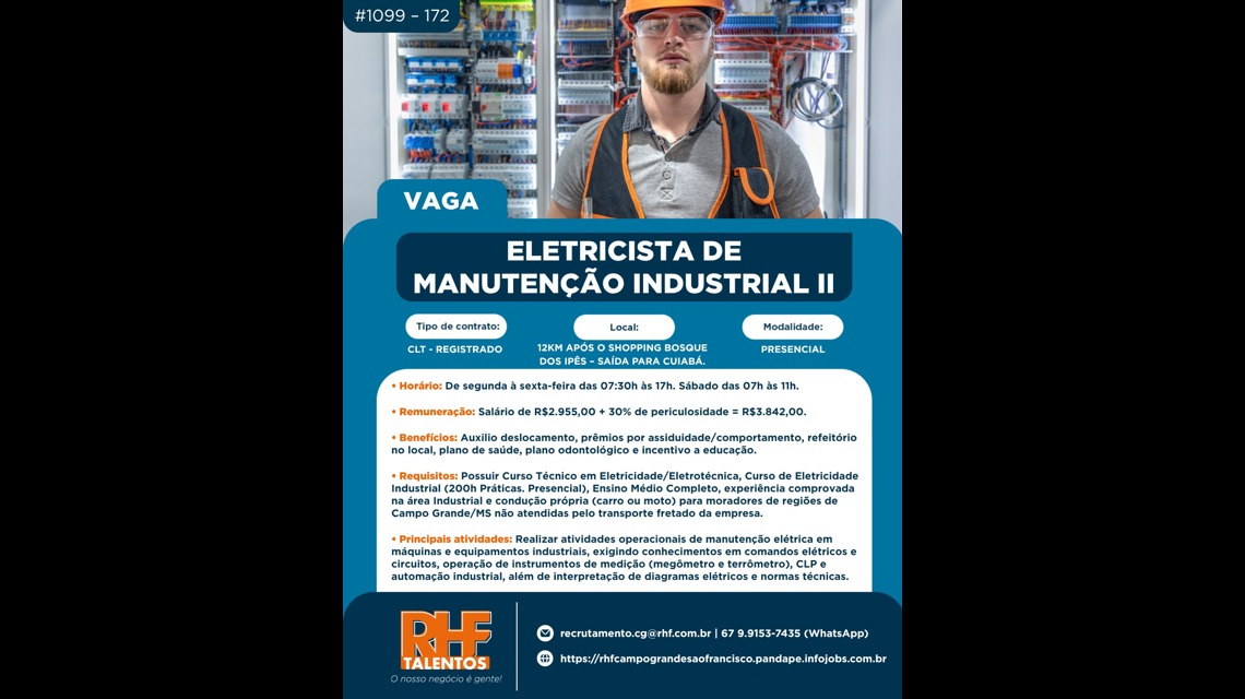 Eletricista de Manutenção Industrial II #1099 - 172